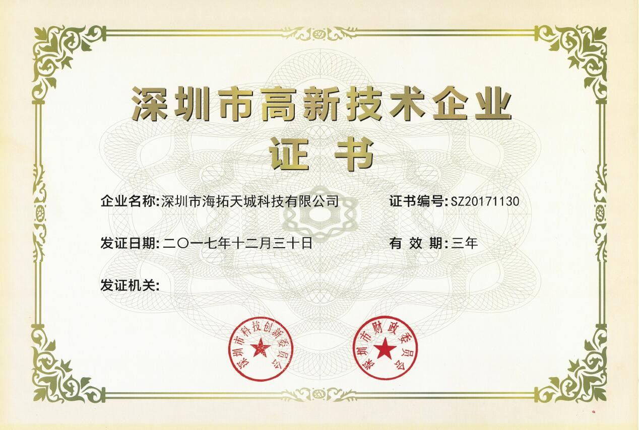 深圳市高新技術企業證書